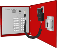 Als manuelle Evakuierungsmöglichkeit stehen unterschiedliche Feuerwehrsprechstellen in einem roten Brandfallmikrofon-Wandgehäuse zur Verfügung.