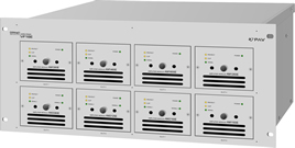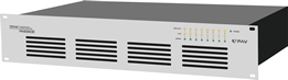 Der Verstärker PA8350E bietet 8 Kanäle mit jeweils 350 W Dauerleistung bei 100 V in einem 2 HE-Gehäuse. Die Audioanbindung an den System-Controller erfolgt über CobraNet®.