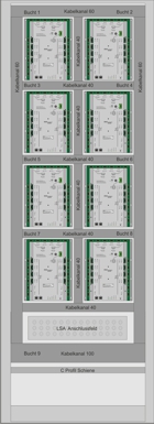 Die verfügbaren Ein- und Ausgänge werden durch die Bestückung des Schrankes mit den unterschiedlichen Systemgeräten bestimmt.